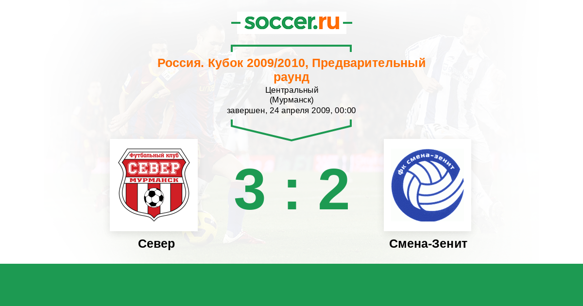 Россия. Вторая лига. Группа 2 12.10.2009 Север Логотип футбольный клуб Север (Мурманск) 2:1 Логотип футбольный клуб Смена-Зенит (Санкт-Петербург) Смена-Зенит
