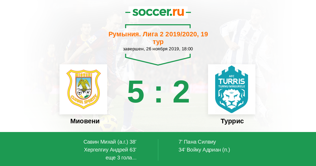 Протокол матча Миовени против Туррис