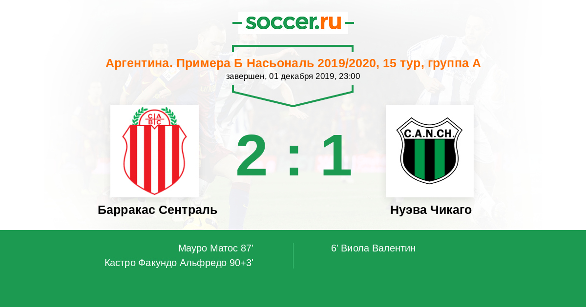 Протокол матча Барракас Сентраль против Нуэва Чикаго