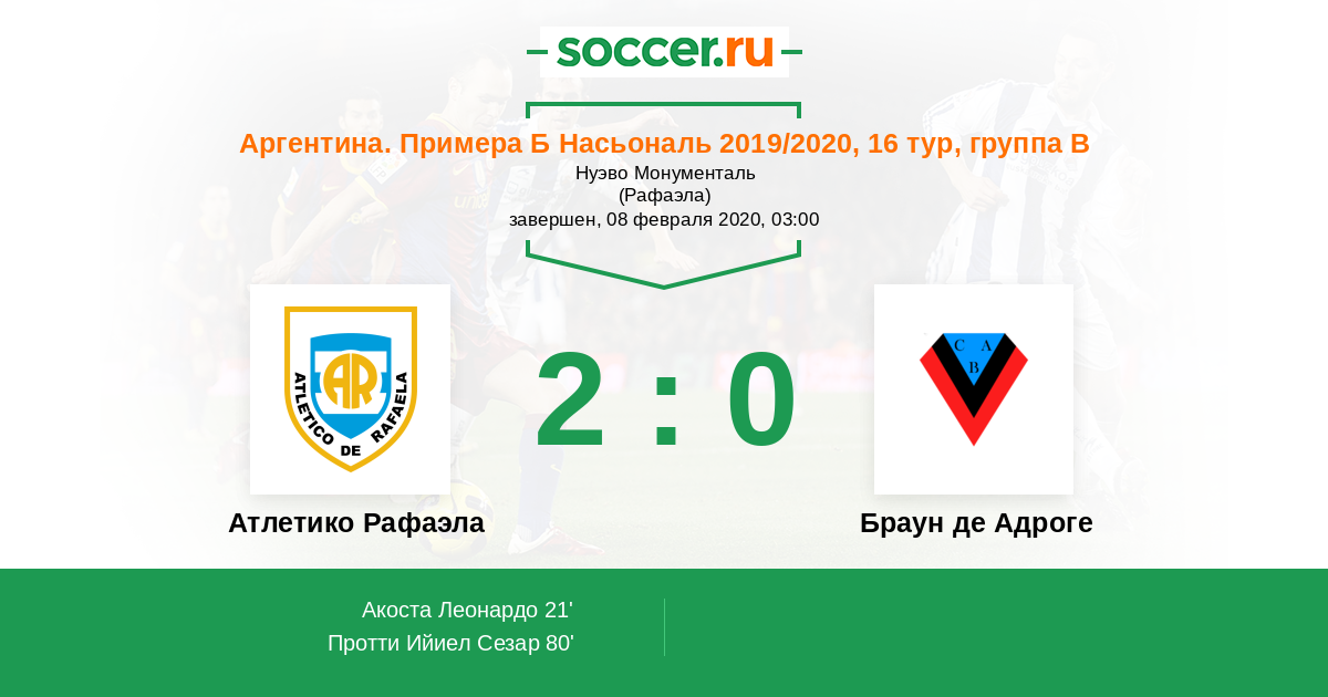 Протокол матча Атлетико Рафаэла против Браун де Адроге