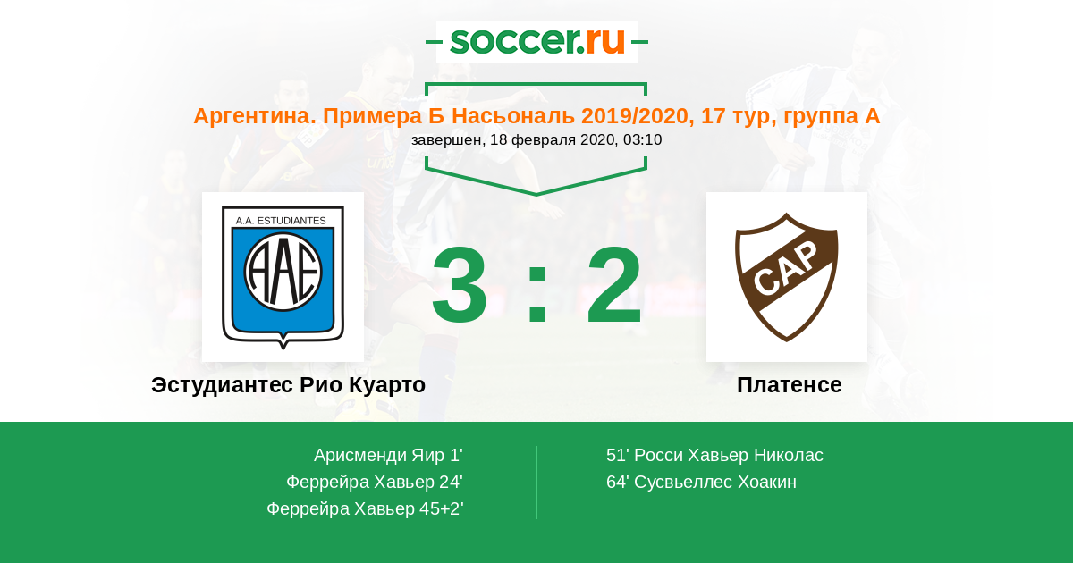 Протокол матча Эстудиантес Рио Куарто против Платенсе