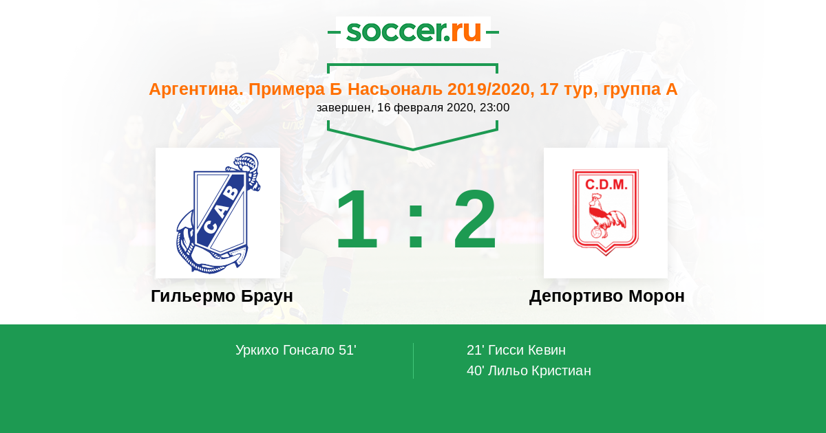 Протокол матча Гильермо Браун против Депортиво Морон