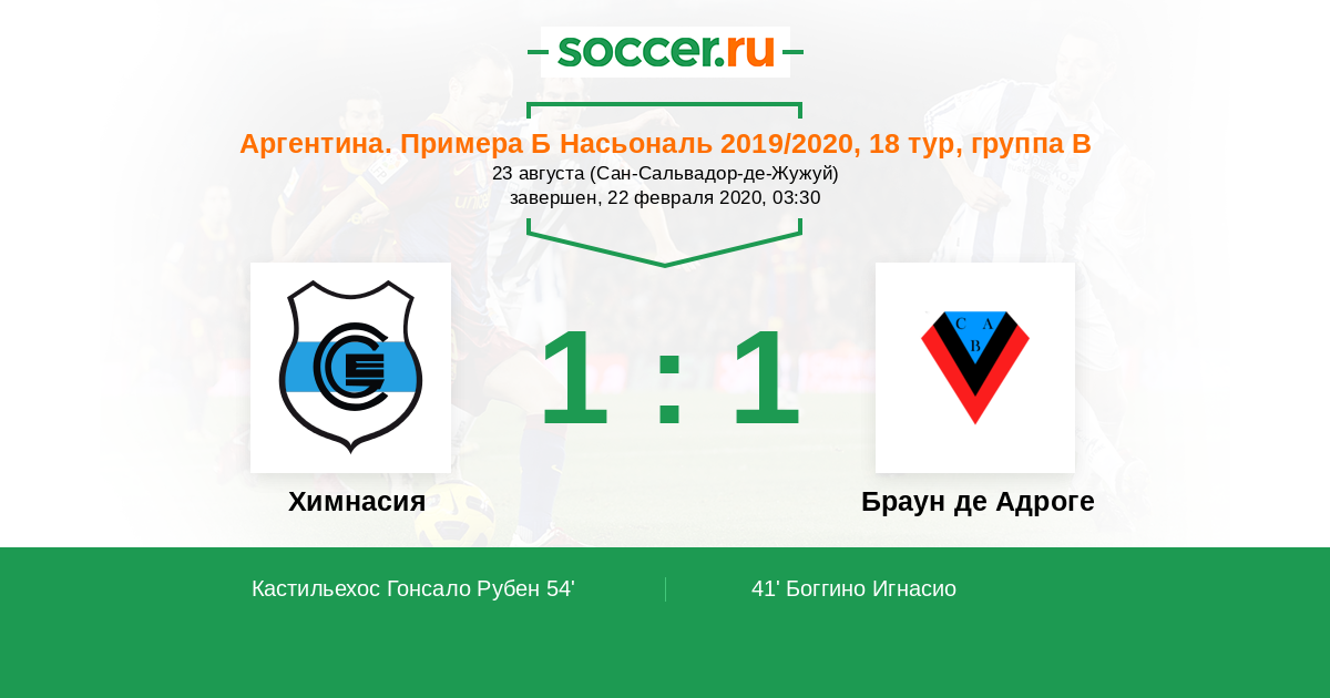 Протокол матча Химнасия против Браун де Адроге
