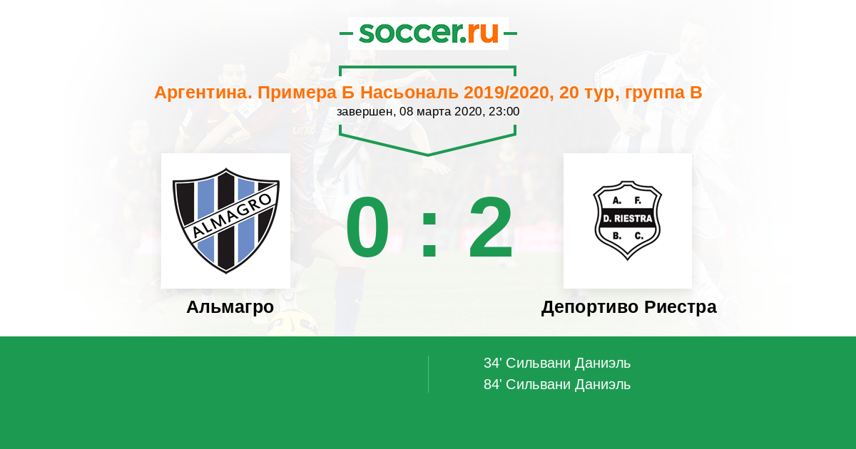 Протокол матча Альмагро против Депортиво Риестра