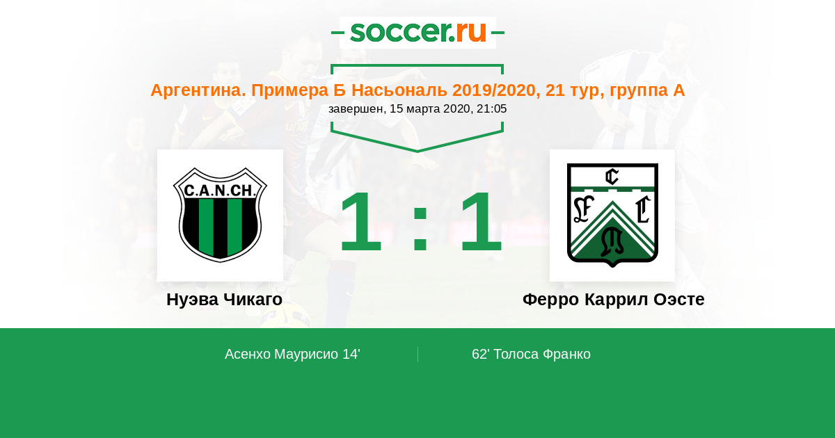 Протокол матча Нуэва Чикаго против Ферро Каррил Оэсте