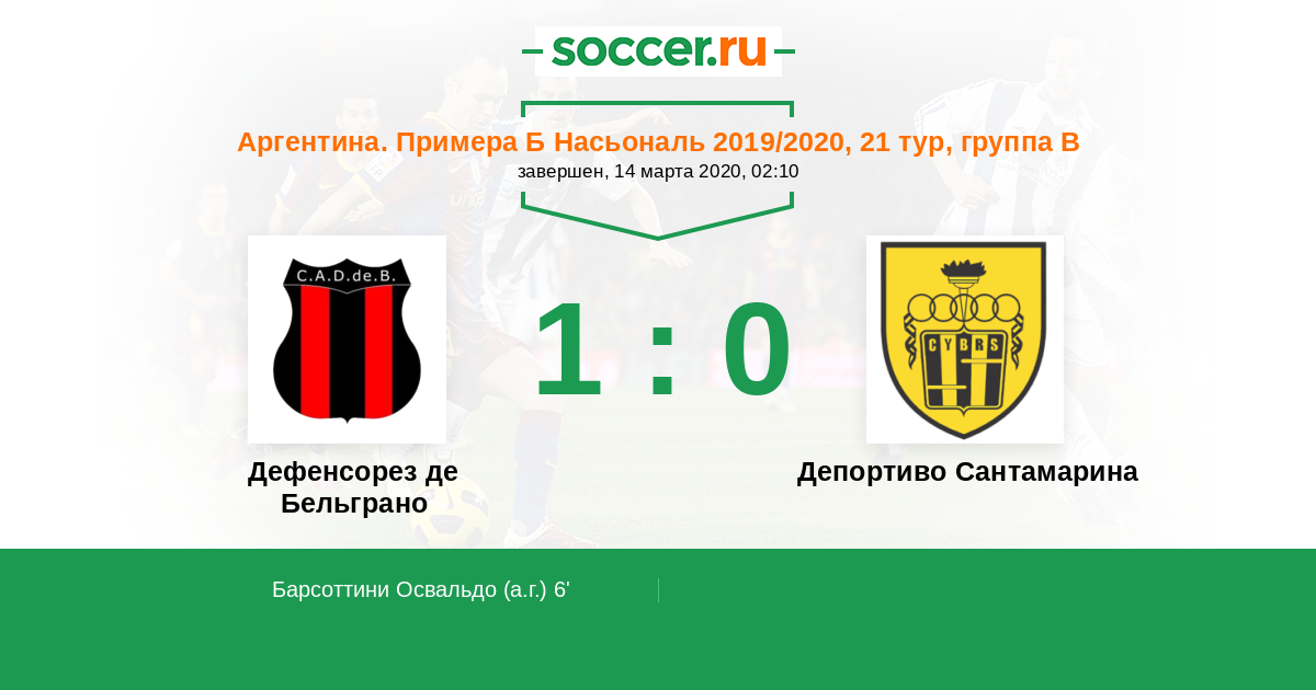 Протокол матча Дефенсорез де Бельграно против Депортиво Сантамарина