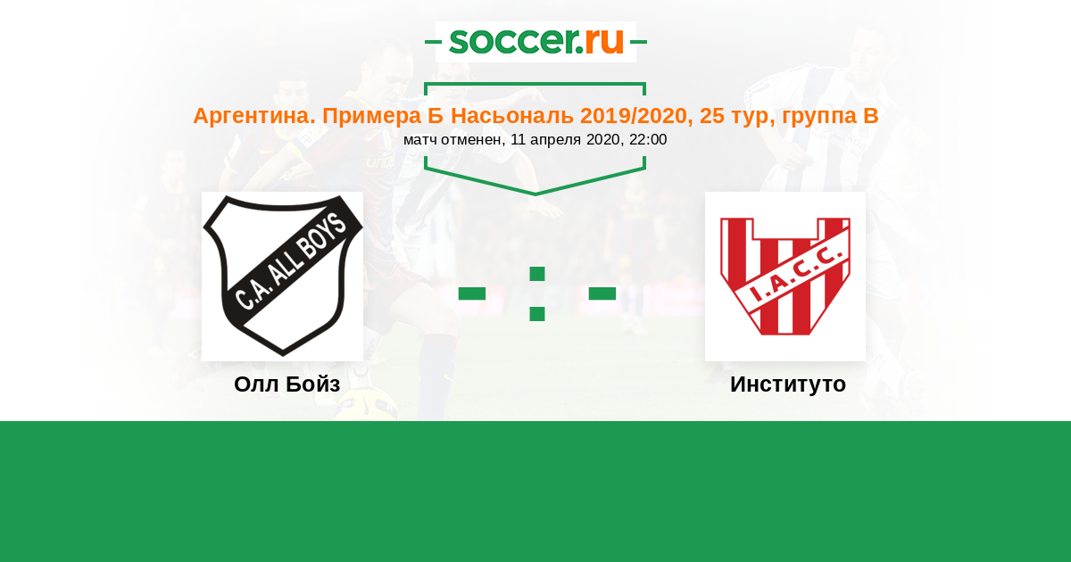 Аргентина. Примера Б Насьональ 21.10.2019 Институто Логотип футбольный клуб Институто (Кордоба) 1:1 Логотип футбольный клуб Олл Бойз (Буэнос-Айрес) Олл Бойз