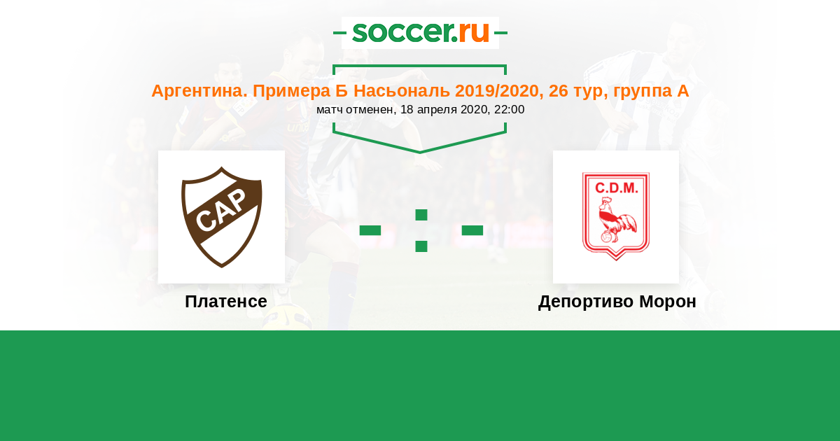 Аргентина. Примера Б Насьональ 19.09.2018 Платенсе Логотип футбольный клуб Платенсе (Флорида) 2:0 Логотип футбольный клуб Депортиво Морон Депортиво Морон