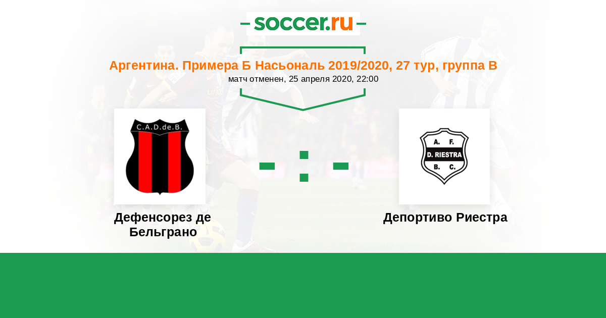 История матча Дефенсорез де Бельграно против Депортиво Риестра