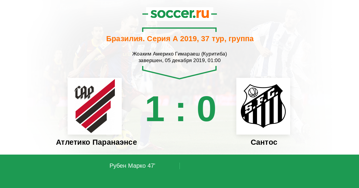 Протокол матча Атлетико Паранаэнсе против Сантос