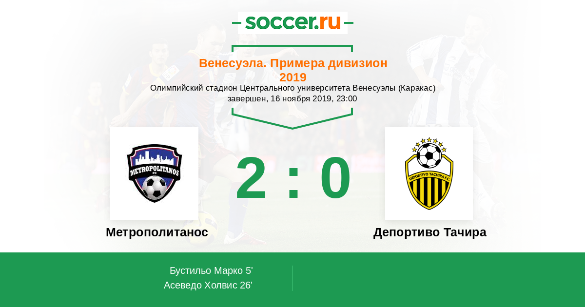 Протокол матча Метрополитанос против Депортиво Тачира