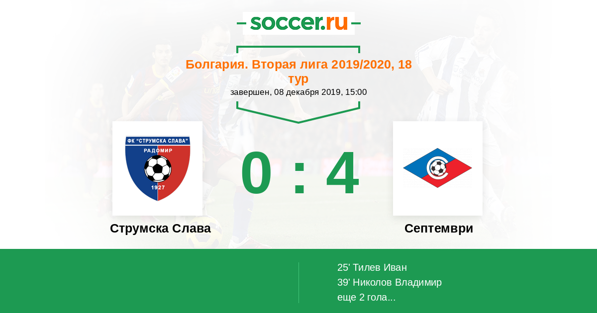 Протокол матча Струмска Слава против Септември