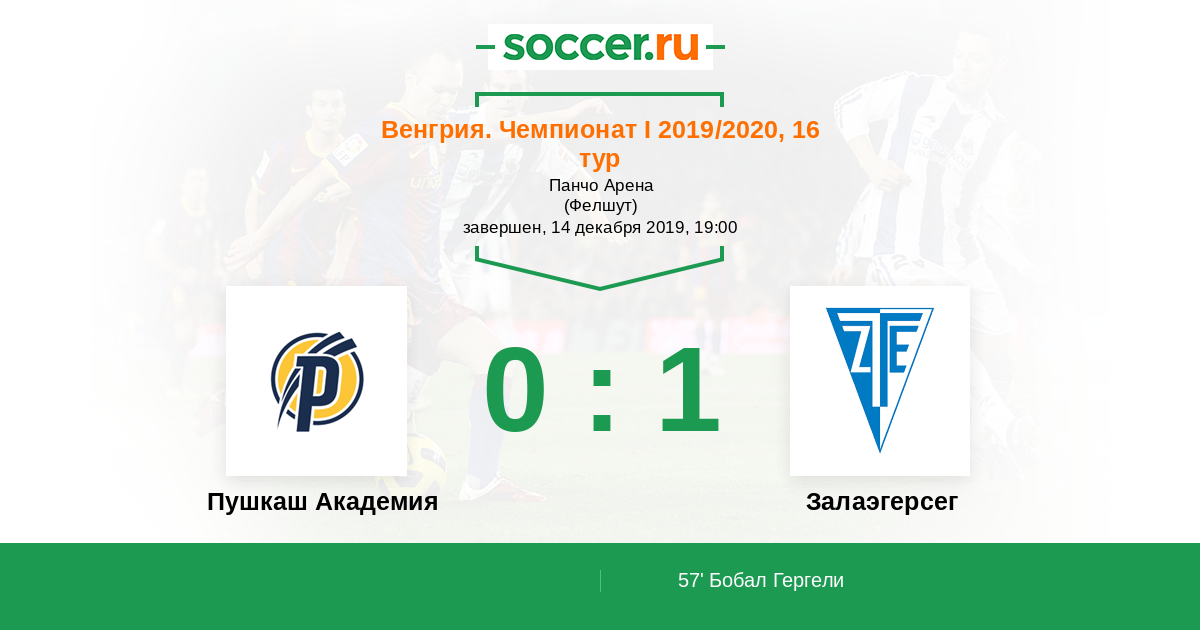Протокол матча Пушкаш Академия против Залаэгерсег