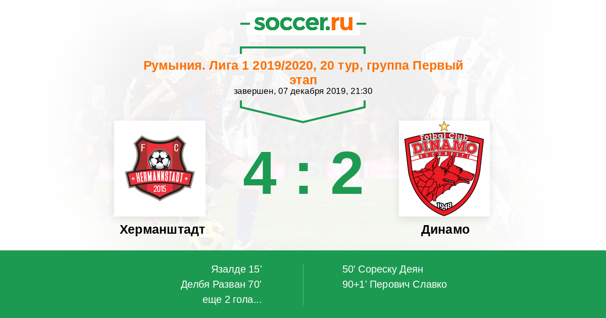 Протокол матча Херманштадт против Динамо