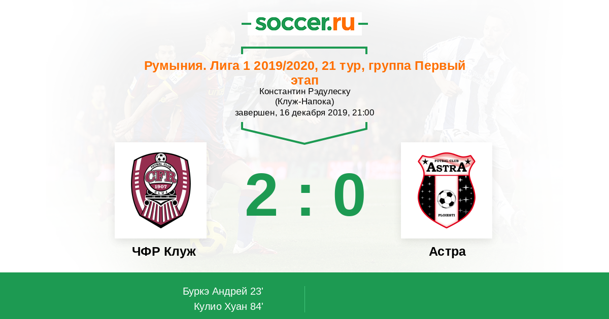 Протокол матча ЧФР Клуж против Астра
