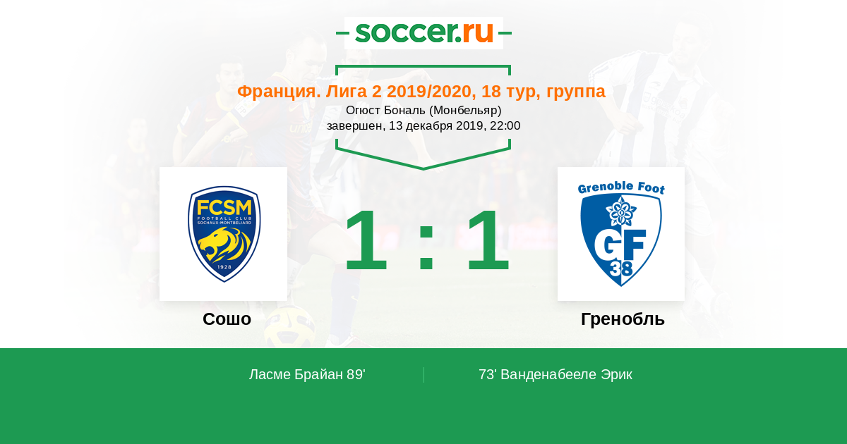 Протокол матча Сошо против Гренобль