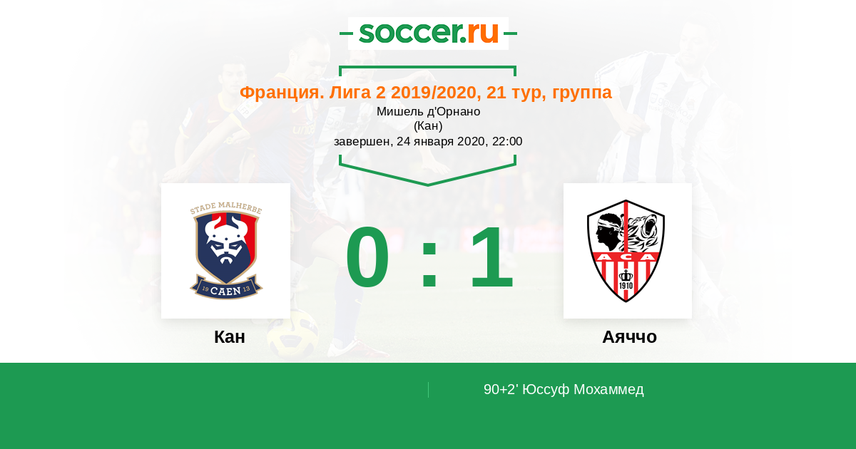 Протокол матча Кан против Аяччо