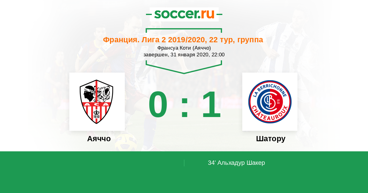 34' (0:1) Альхадур Шакер (24) (Гранж Ромен (15))