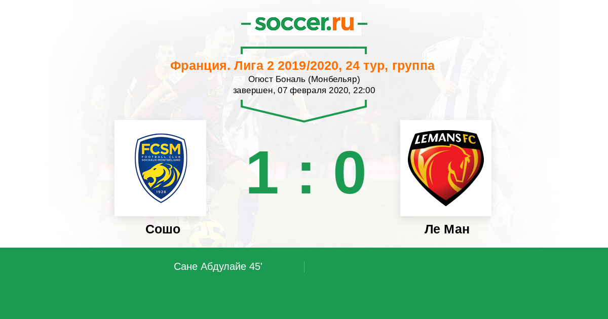 45' (1:0) Сане Абдулайе (27) (Урега Фабьен (10))