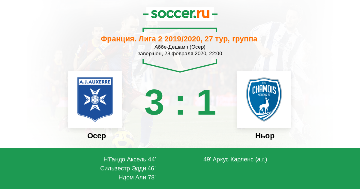 Протокол матча Осер против Ньор