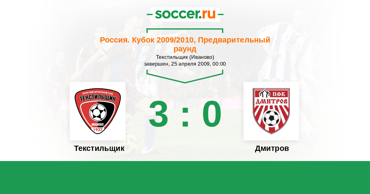 Россия. Вторая лига. Группа 2 19.10.2009 Текстильщик Логотип футбольный клуб Текстильщик (Иваново) 0:1 Логотип футбольный клуб Дмитров Дмитров