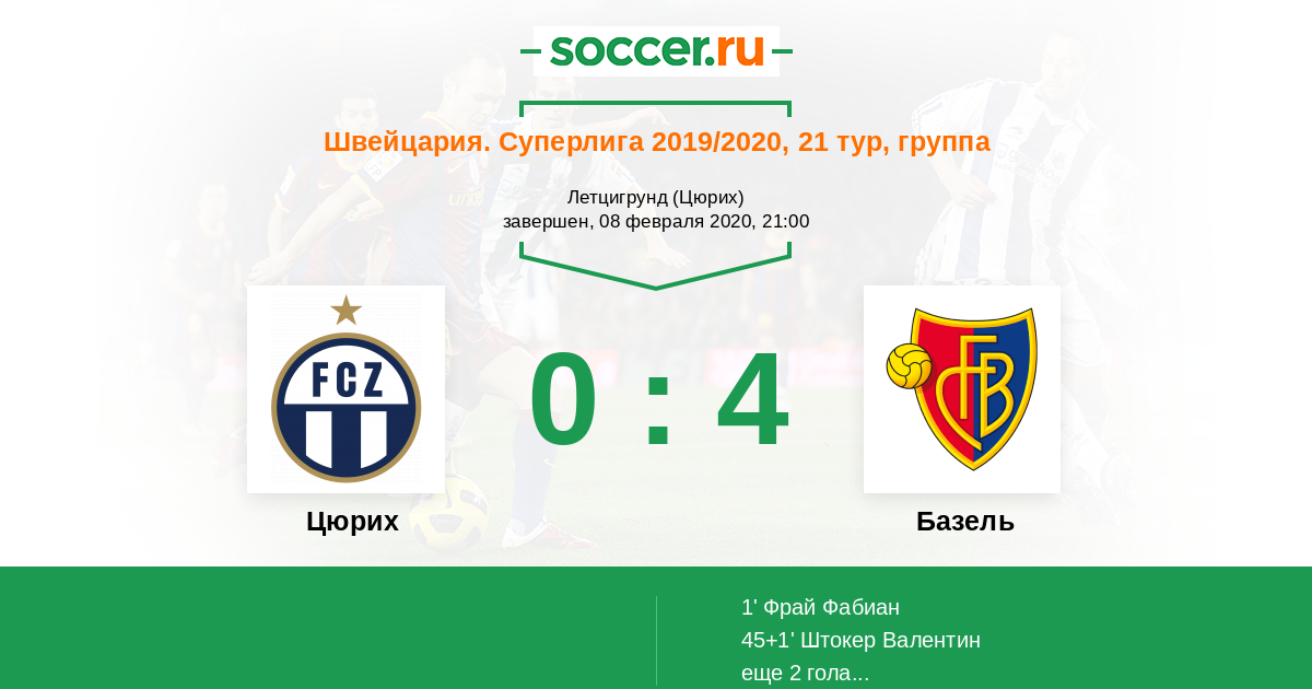 Протокол матча Цюрих против Базель