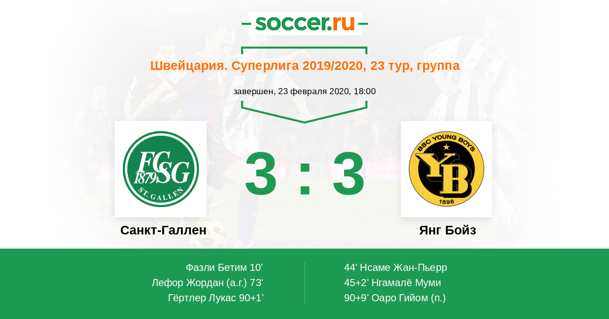 Протокол матча Санкт-Галлен против Янг Бойз