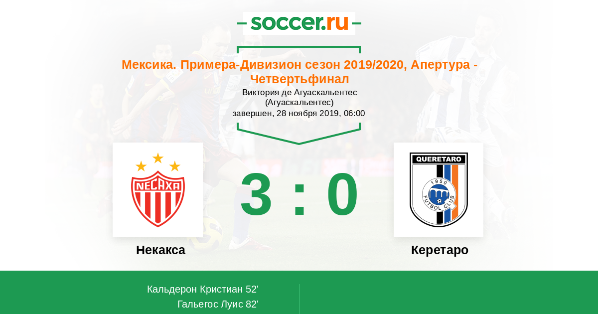Протокол матча Некакса против Керетаро