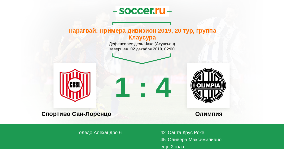 Протокол матча Спортиво Сан-Лоренцо против Олимпия