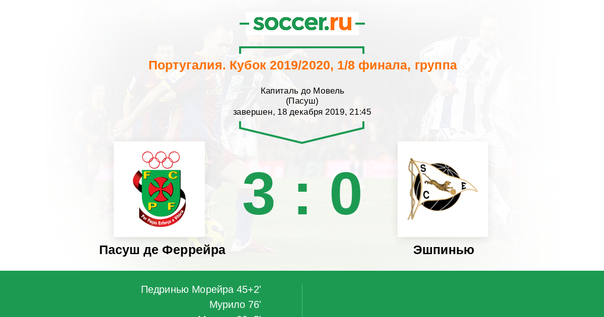 Протокол матча Пасуш де Феррейра против Эшпинью