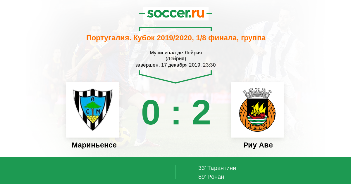 Протокол матча Мариньенсе против Риу Аве