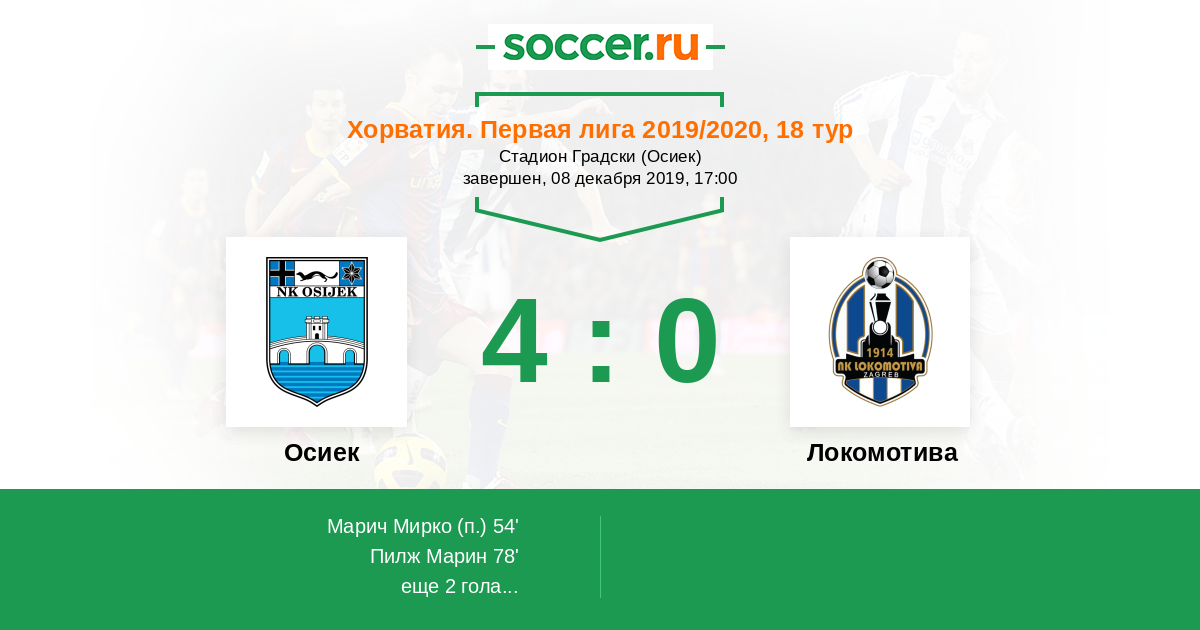 Протокол матча Осиек против Локомотива