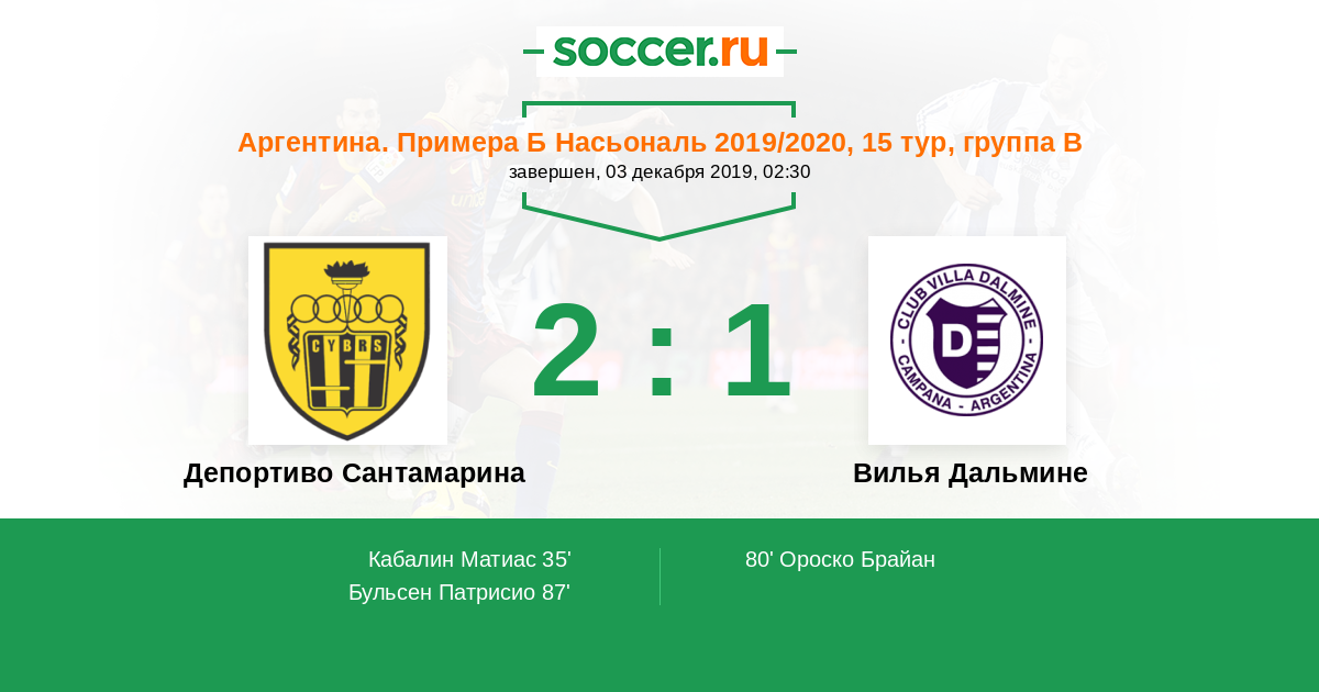Протокол матча Депортиво Сантамарина против Вилья Дальмине