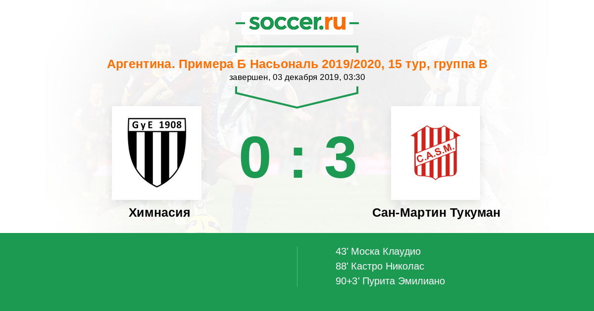 Протокол матча Химнасия против Сан-Мартин Тукуман