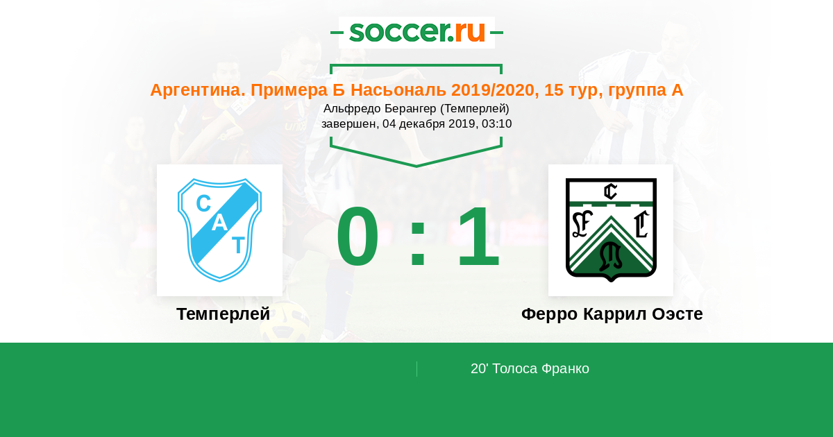 Протокол матча Темперлей против Ферро Каррил Оэсте