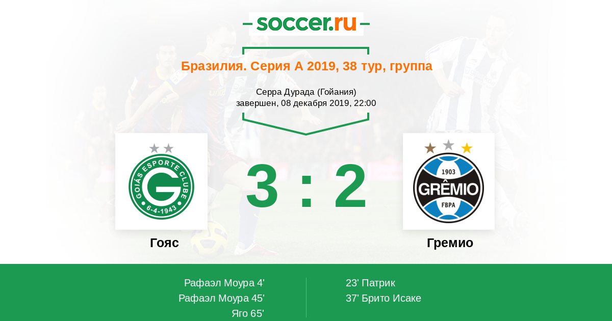 65' (3:2) Яго (32) (Рафаэл Моура (9))