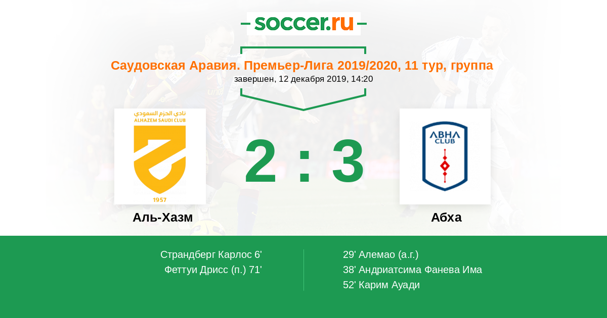 Протокол матча Аль-Хазм против Абха