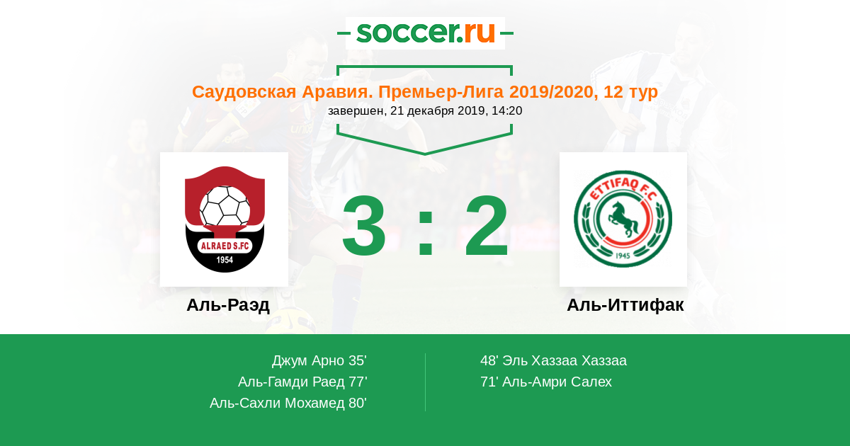 Протокол матча Аль-Раэд против Аль-Иттифак