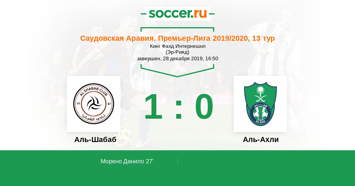Протокол матча Аль-Шабаб против Аль-Ахли