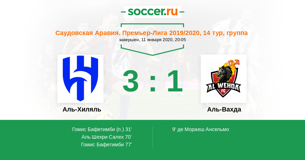 Протокол матча Аль-Хиляль против Аль-Вахда