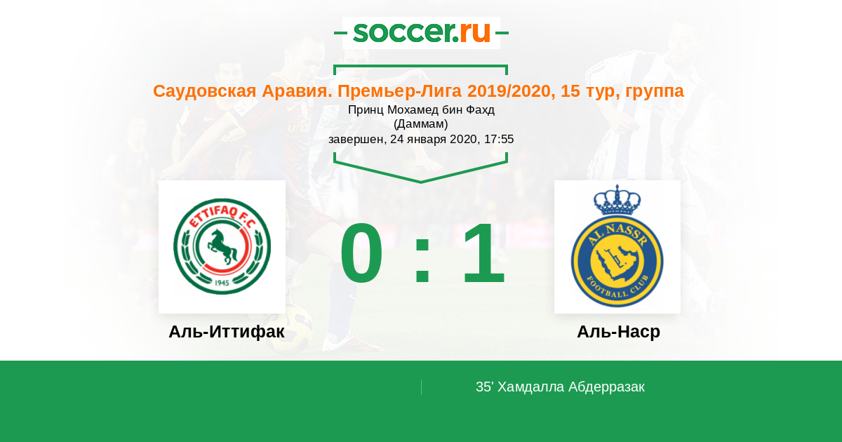 Протокол матча Аль-Иттифак против Аль-Наср