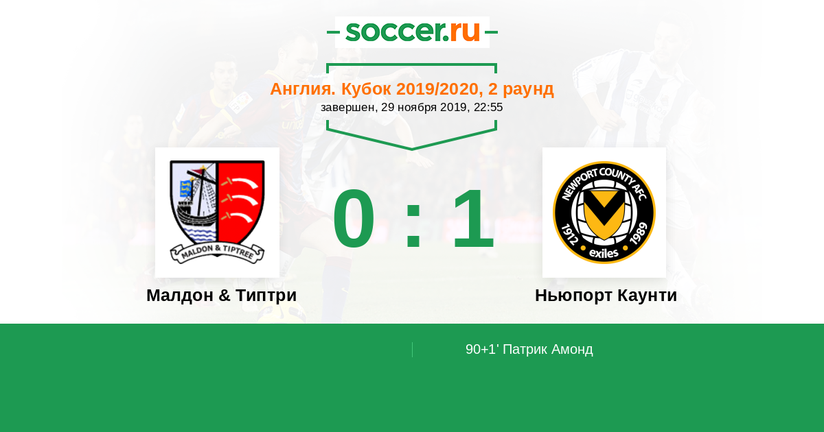Протокол матча Малдон & Типтри против Ньюпорт Каунти