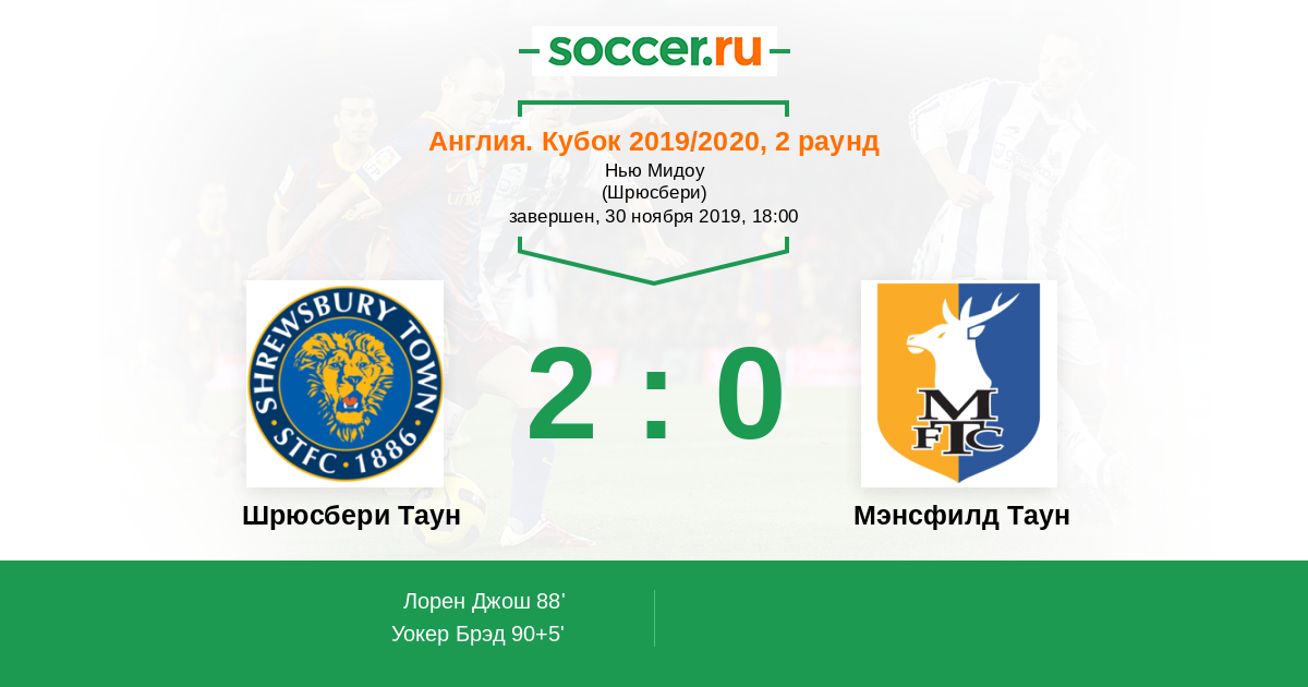 Протокол матча Шрюсбери Таун против Мэнсфилд Таун