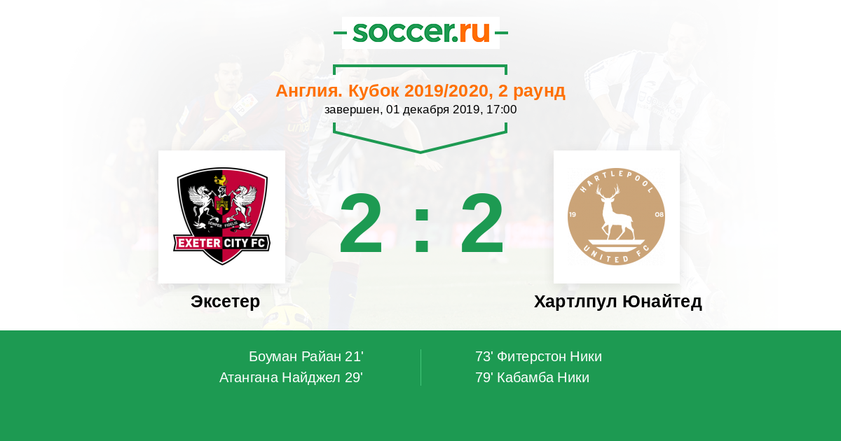Протокол матча Эксетер против Хартлпул Юнайтед