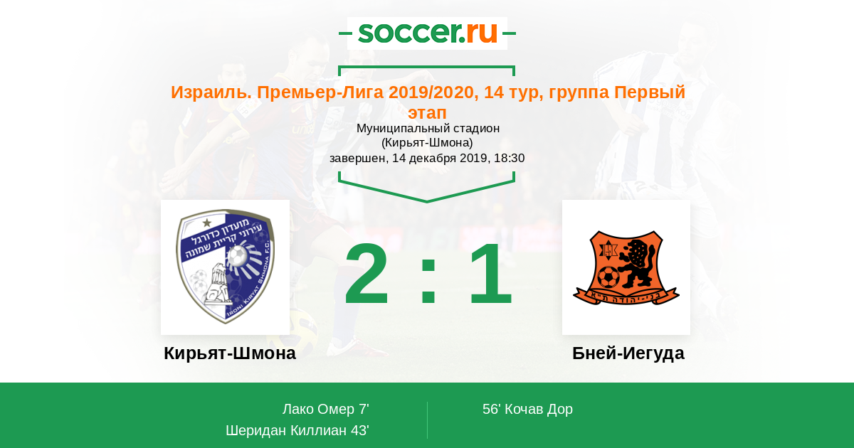 Протокол матча Кирьят-Шмона против Бней-Иегуда