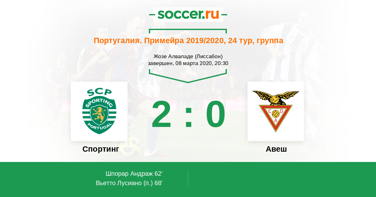 Протокол матча Спортинг против Авеш