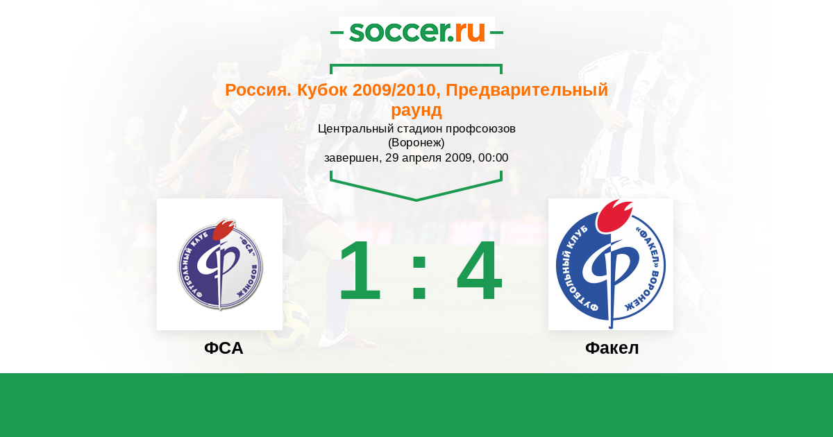 Россия. Вторая лига. Группа 3 05.07.2009 Факел Логотип футбольный клуб Факел (Воронеж) 5:0 Логотип футбольный клуб ФСА (Воронеж) ФСА
