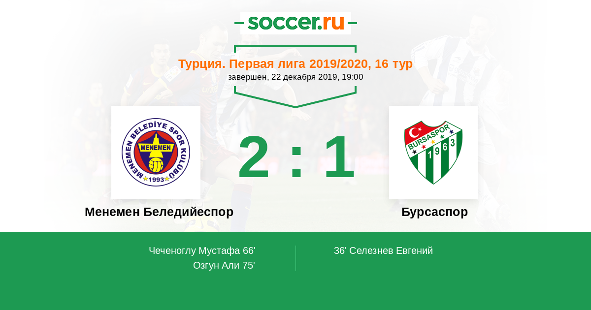 Протокол матча Менемен Беледийеспор против Бурсаспор