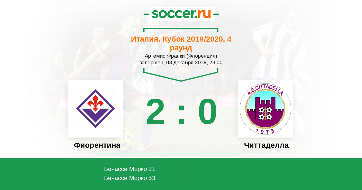 Протокол матча Фиорентина против Читтаделла