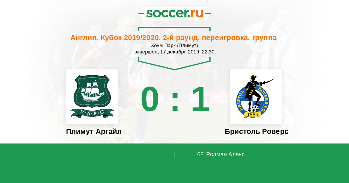 Протокол матча Плимут Аргайл против Бристоль Роверс